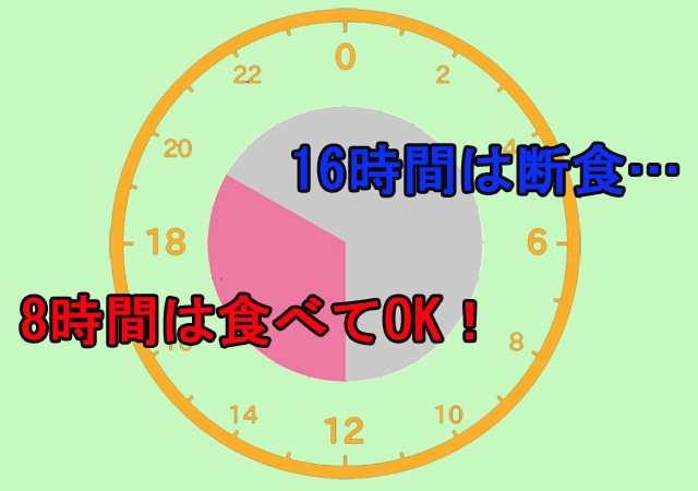 1日24時間のうち16時間だけ食べ物を口にしなければ、残りの8時間は何を食べてもよく、間食やお酒もOKです。